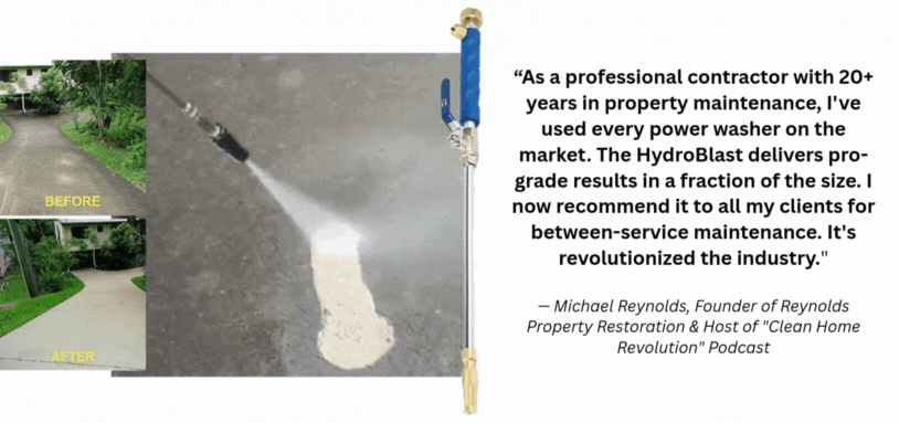 ⭐⭐⭐⭐⭐ "Where has this been all my life?! I was about to spend $400 on a professional service when my son bought me the HydroBlast™ for Mother's Day. This tiny thing cleaned my entire patio in 15 minutes! The before and after pics look like I replaced the concrete. Now the neighbors keep asking to borrow it!"
